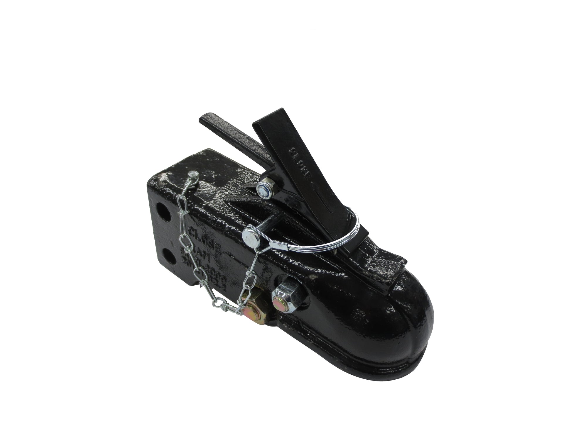 Durable top lever latch and pin assembly.