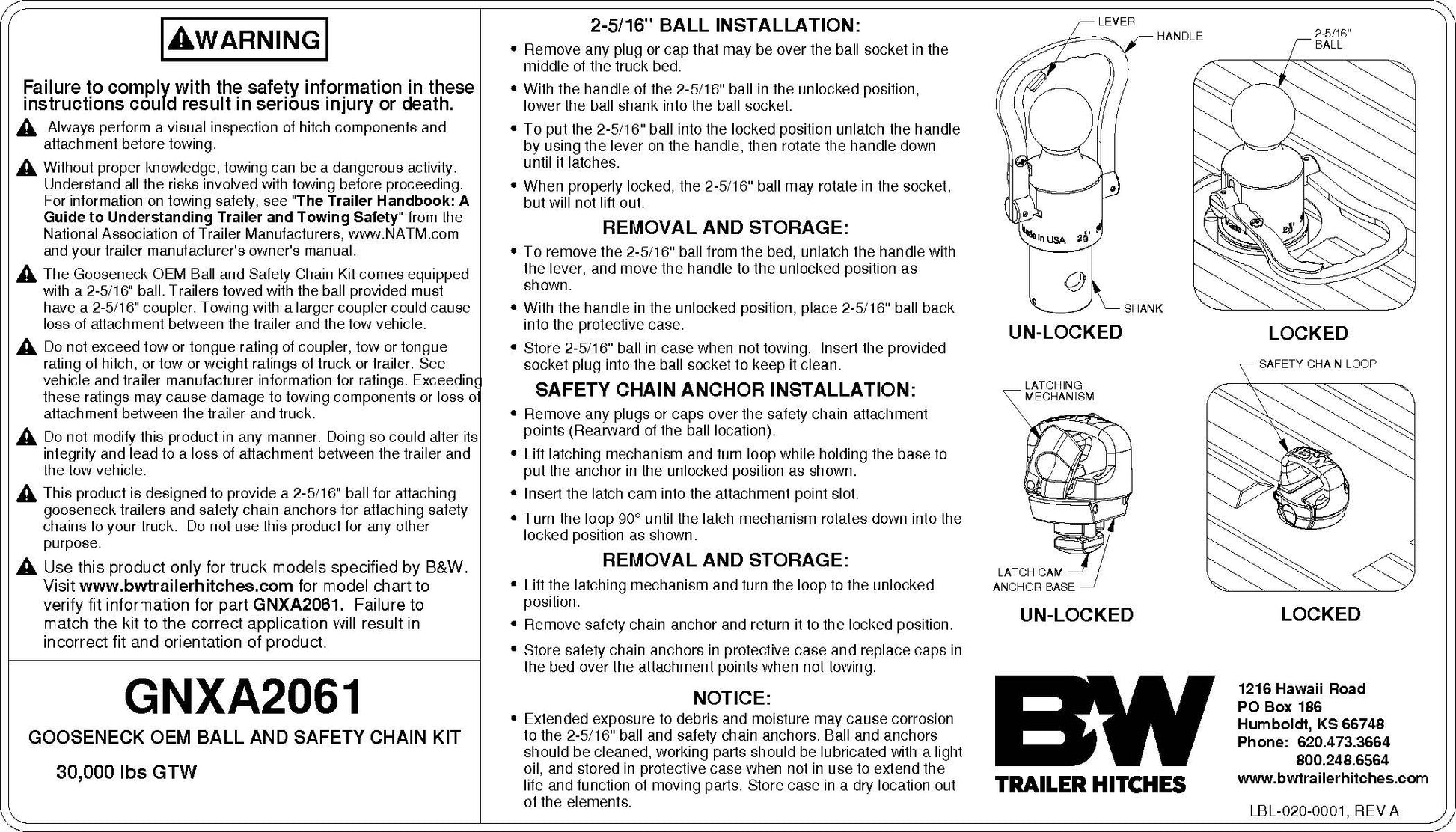 B&W Gooseneck Ball & Safety Chain Anchor Kit - Ram GNXA2062