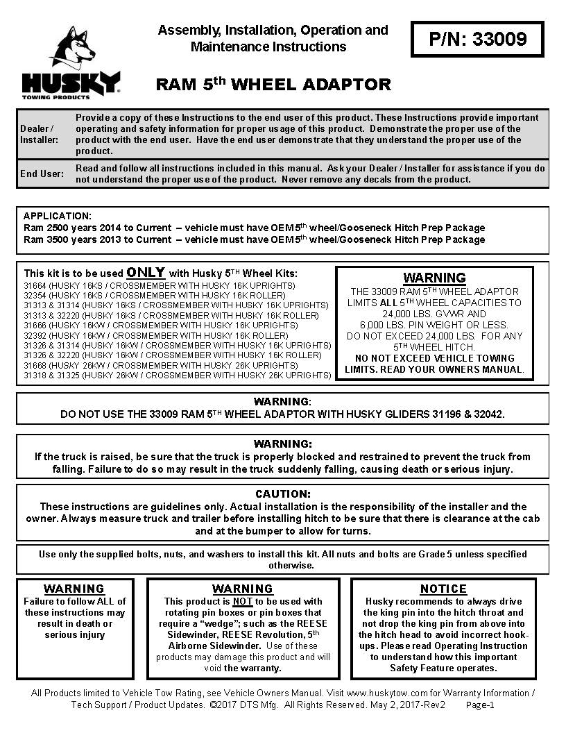 Husky Puck System 5th Wheel Adapter - 33009