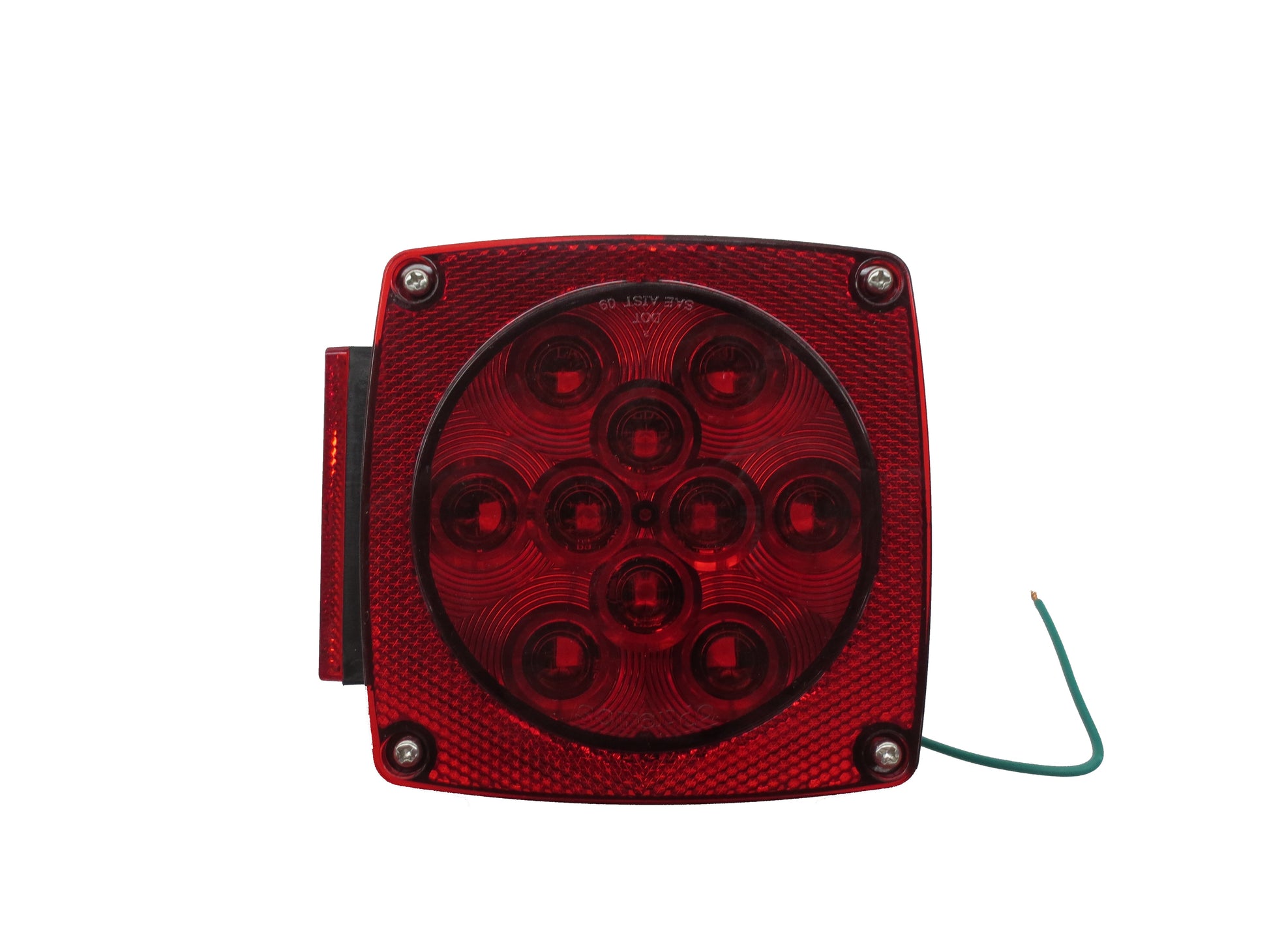 Universal stud-mount stop/turn/tail lights for applications under 80" wide. STL-8RB is 6-function: stop, turn, tail, rear reflex, side marker, and side reflex. All-weather molded plastic housing and durable lens protect against corrosion. Mounts on 2" centers, grounds through mounting studs.