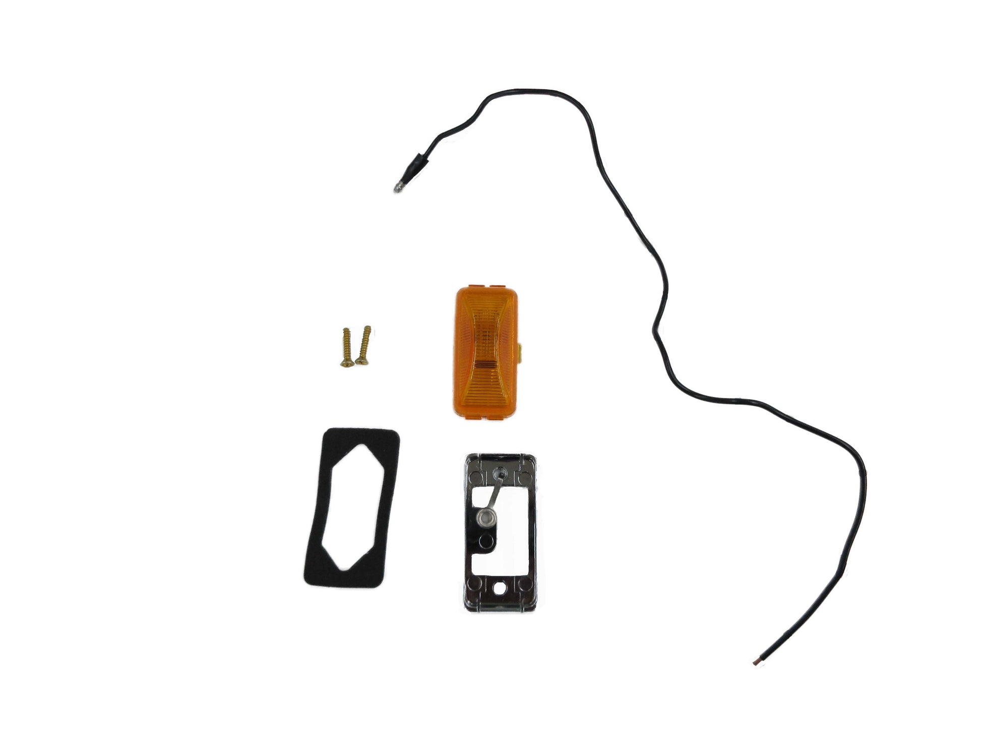 Kit comes with: Chrome bezel, wire, two mounting screws, thin foam grommet, and an amber light