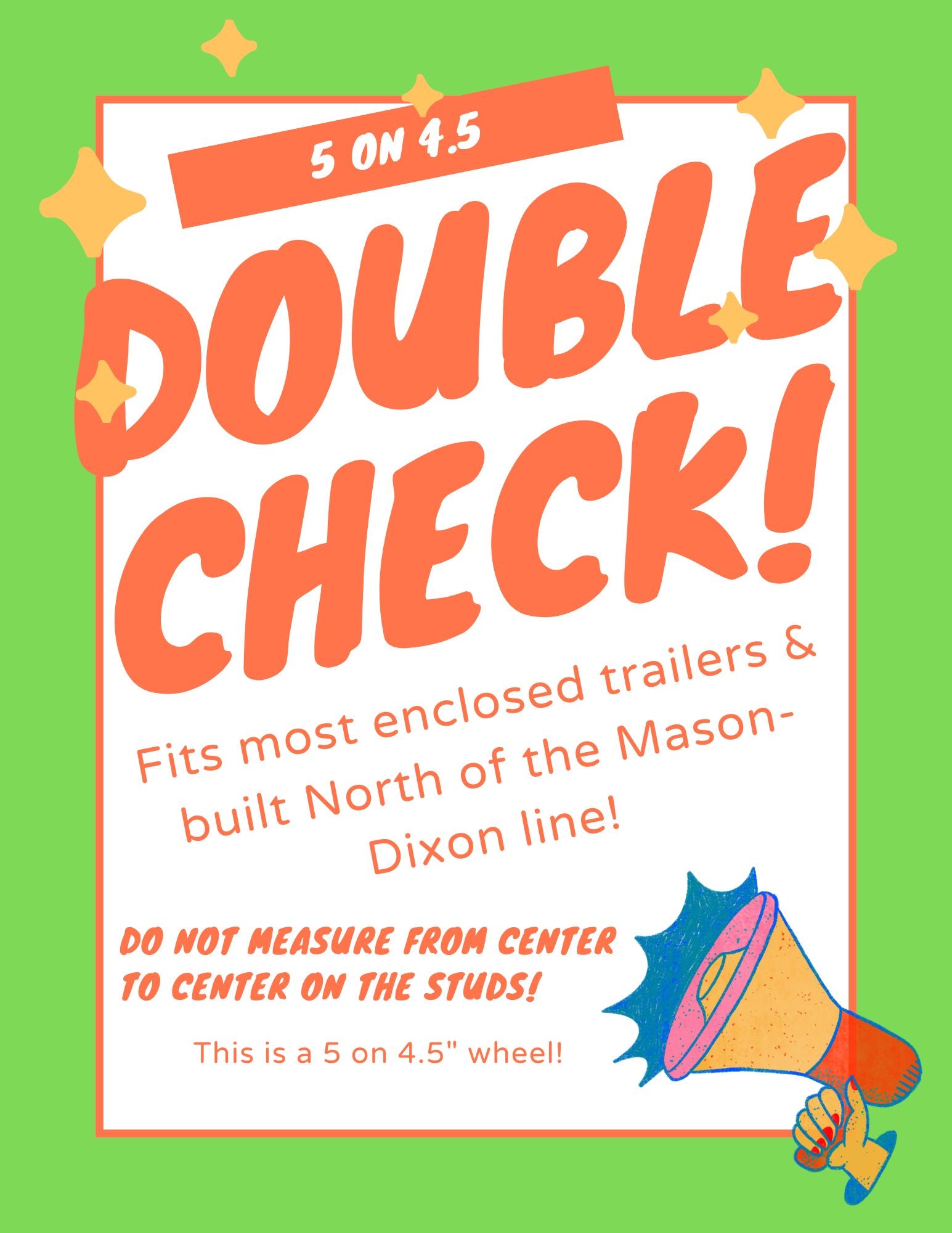 A common mistake when measuring is going from the center of one stud to the center of the next closest stud. This is wrong and the wheel won't fit as expected. Save yourself time & frustration - measure BEFORE you buy!